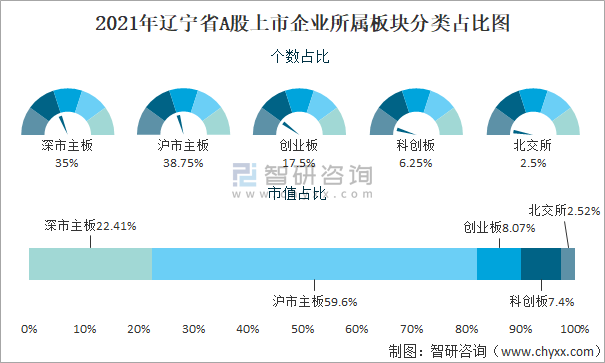 2021年遼寧省A股上市企業所屬板塊分類占比圖