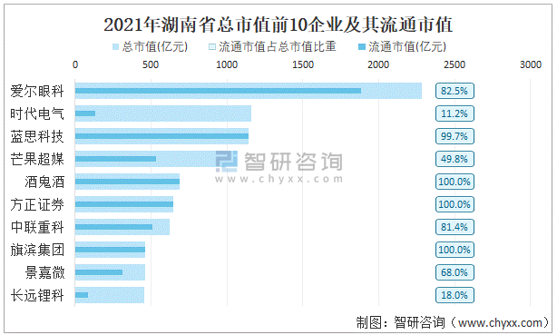2021年湖南省A股上市總市值前10強(qiáng)企業(yè)及其流通市值