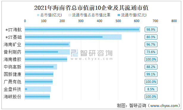 2021年海南省A股上市總市值前10強(qiáng)企業(yè)及其流通市值