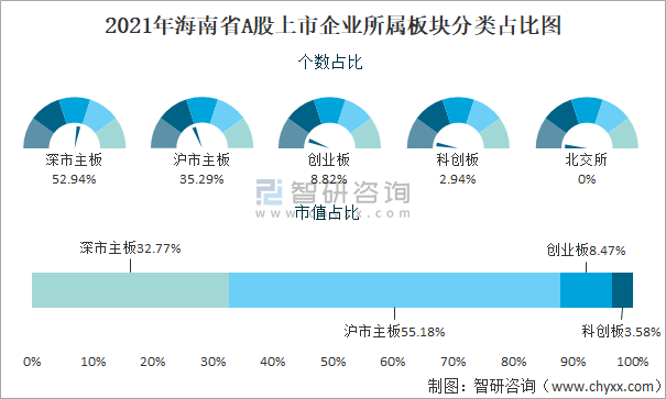 2021年海南省A股上市企業(yè)所屬板塊分類占比圖