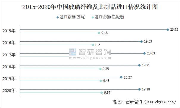 2015-2020年中國玻璃纖維及其制品進口情況統(tǒng)計圖