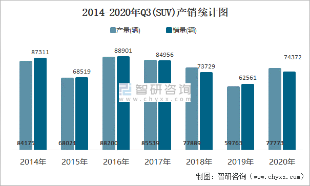 2014-2020年Q3(SUV)產(chǎn)銷統(tǒng)計(jì)圖