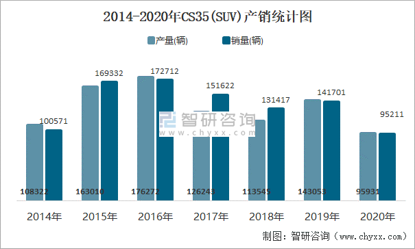 2014-2020年CS35(SUV)產銷統計圖