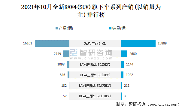 2021年10月全新RAV4旗下車系列產銷(以銷量為主)排行榜