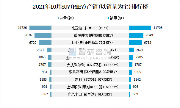 2021年10月SUV(PHEV)產銷(以銷量為主)排行榜