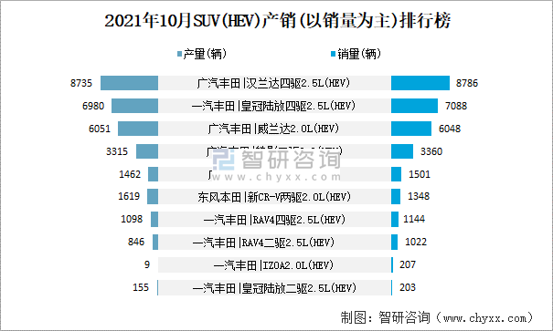 2021年10月SUV(HEV)產銷(以銷量為主)排行榜