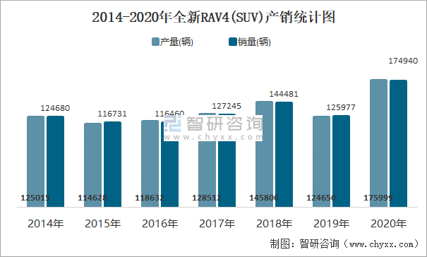 2014-2020年全新RAV4(SUV)產銷統計圖