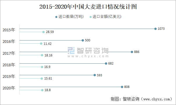 2015-2020年中國大麥進(jìn)口情況統(tǒng)計(jì)圖