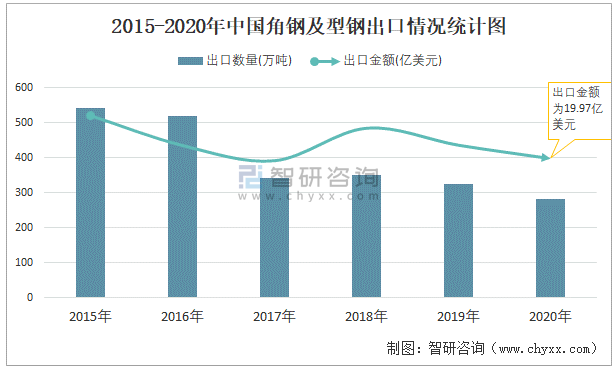 2015-2020年中國(guó)角鋼及型鋼出口情況統(tǒng)計(jì)圖