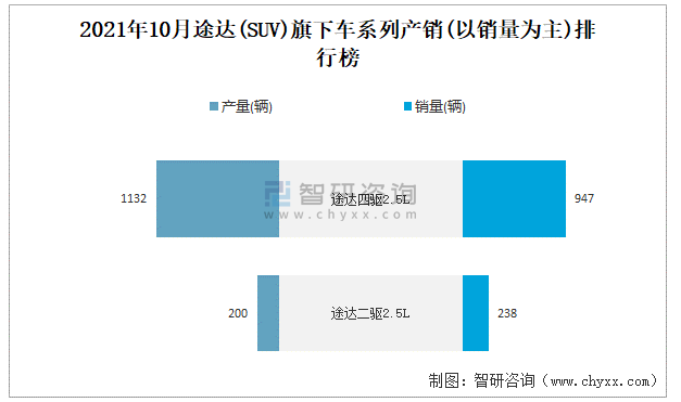 2021年10月途達(SUV)產銷量分別為1332輛和1185輛 當月產銷率為88.96%