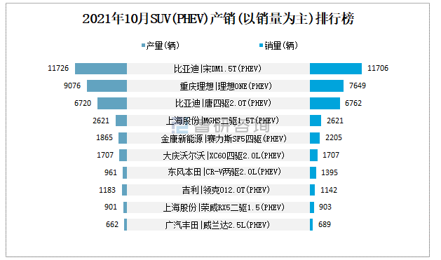 2021年10月SUV(PHEV)產(chǎn)銷(以銷量為主)排行榜