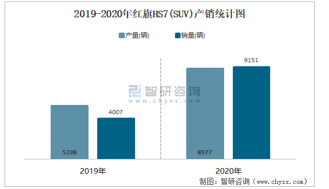 2019-2020年紅旗HS7(SUV)產(chǎn)銷統(tǒng)計(jì)圖