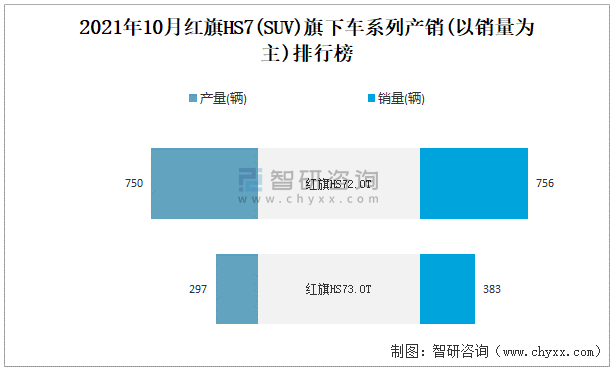 2021年10月紅旗HS7旗下車系列產(chǎn)銷(以銷量為主)排行榜