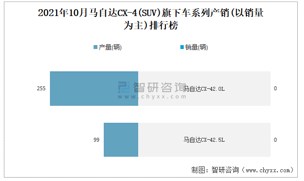 根據中國汽車工業協會數據可知:2021年10月馬自達CX-4(SUV)產量為354輛,同比下降94.2%,銷量為0輛,同比下降100%,當月產銷率為0%;2021年1-10月馬自達CX-4(SUV)累計產量為12851輛,同比下降71.6%,累計銷量為11405輛,同比下降70.1%,累計產銷率為88.75%;2016-2020年馬自達CX-4(SUV)產銷量均在2017年達到最高值,此后總體呈現下降趨勢,且近5年總產量大于總銷量,積壓了庫存5360輛。
