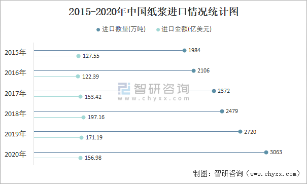 2015-2020年中國(guó)紙漿進(jìn)口情況統(tǒng)計(jì)圖