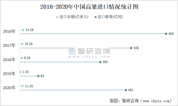 根據(jù)中國海關(guān)數(shù)據(jù)顯示:2016-2020年中國高粱進(jìn)口數(shù)量與進(jìn)口金額均在2019年跌至最低值,此后大幅度上升;2016-2020年中國高粱進(jìn)口平均單價(jià)2018年增長(zhǎng)速度最快,而在2017年下滑速度最快,下滑了5.6%。