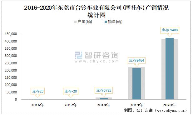 2016-2020年東莞市臺鈴車業(yè)有限公司產(chǎn)銷情況統(tǒng)計圖