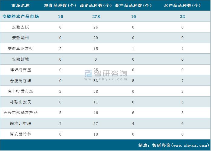 2022113日安徽農產品批發市場品類詳情統計表