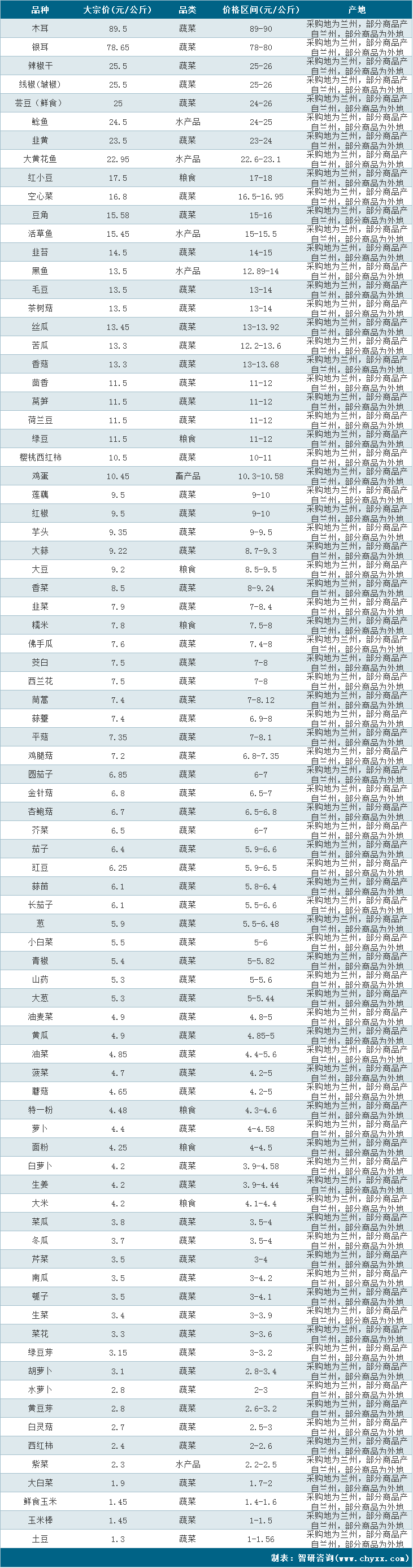 2022113日甘肅甘安定馬鈴薯發布農產品品種價格統計表