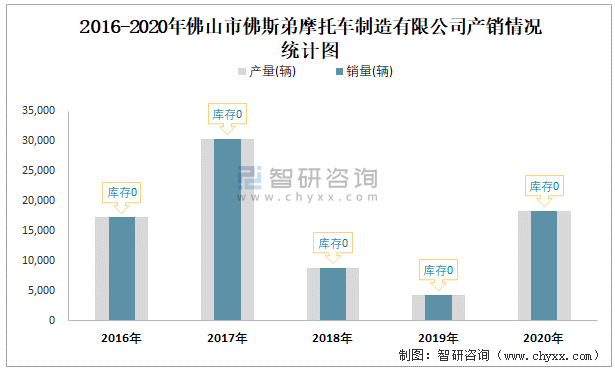 2016-2020年佛山市佛斯弟摩托車制造有限公司產(chǎn)銷情況統(tǒng)計圖