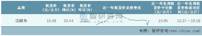 根據(jù)農(nóng)村農(nóng)業(yè)部數(shù)據(jù)統(tǒng)計(jì)可知:2022年第2周全國活鯉魚平均批發(fā)價(jià)為15.58元/公斤,同比增加24.44%,環(huán)比增加0.52%,近一年全國活鯉魚平均批發(fā)價(jià)最高達(dá)到19.18元/公斤,批發(fā)價(jià)最低也要12.37元/公斤。