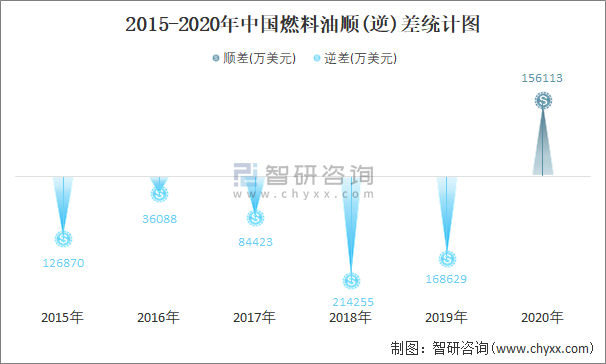 2015-2020年中國燃料油順(逆)差統(tǒng)計圖