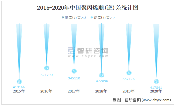 2015-2020年中國聚丙烯順(逆)差統(tǒng)計圖