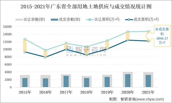 2021年廣東省土地供應面積及成交面積分析:出讓面積14760.14萬㎡,土地成交12205.21萬㎡