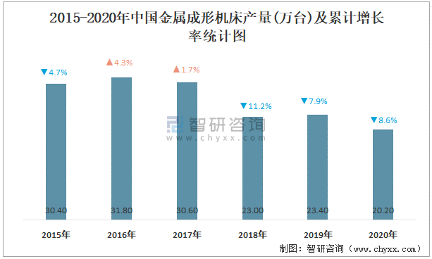 2015-2020年中國金屬成形機(jī)床產(chǎn)量及累計(jì)增長率統(tǒng)計(jì)圖