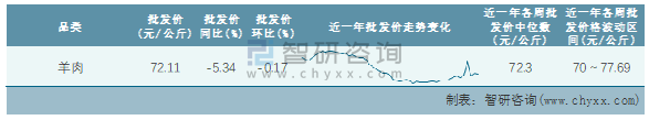 根據(jù)農(nóng)村農(nóng)業(yè)部數(shù)據(jù)統(tǒng)計(jì)可知:2022年第3周全國羊肉平均批發(fā)價(jià)為72.11元/公斤,同比下跌5.34%,環(huán)比下跌0.17%,近一年全國羊肉平均批發(fā)價(jià)最高達(dá)到77.69元/公斤,批發(fā)價(jià)最低也要70元/公斤。