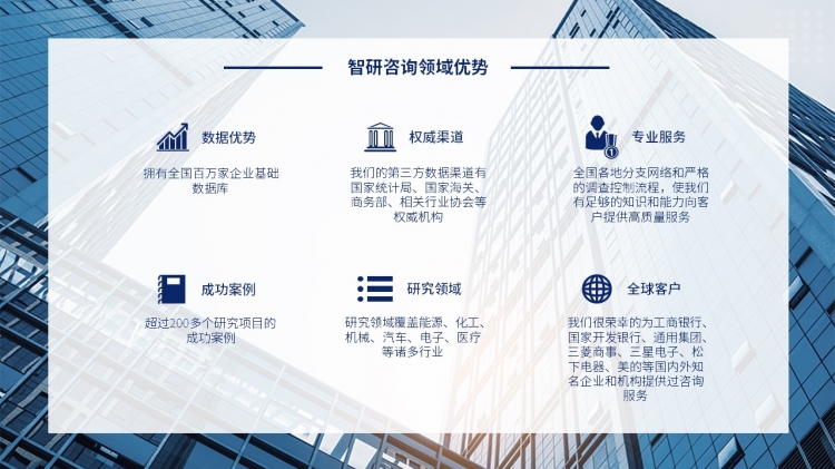 北京智研科信咨詢有限公司是一家專業從事產業研究和市場調研的咨詢機構。主要業務包含產業研究報告、可行性研究報告、定制報告、商業計劃書等。智研咨詢(m.jwnclean.com)是北京智研科信咨詢有限公司旗下運營的一家行業研究咨詢網站,主要致力于為廣大客戶提供最全最新的深度研究報告,提供客觀、理性、簡便的決策參考,提供降低投資風險,提高投資收益的有效工具。