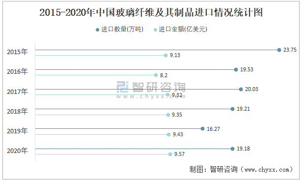 2015-2020年中國玻璃纖維及其制品進口情況統計圖