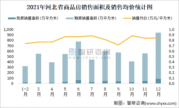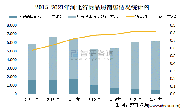 2021年河北省商品房銷售面積及銷售均價統(tǒng)計圖