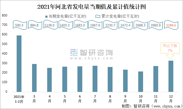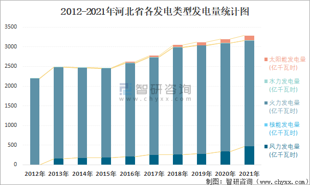 2021年1-12月河北省發電量為3288.6億千瓦時 以火力發電量為主(占比81.69%)