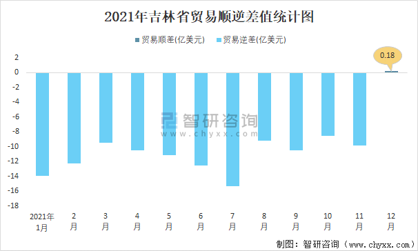 2021年吉林省貿易順逆差值統計圖