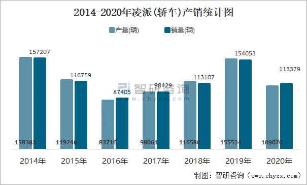 2014-2020年凌派(轎車)產(chǎn)銷統(tǒng)計圖