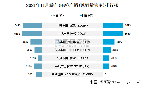 2021年11月轎車(HEV)產銷(以銷量為主)排行榜