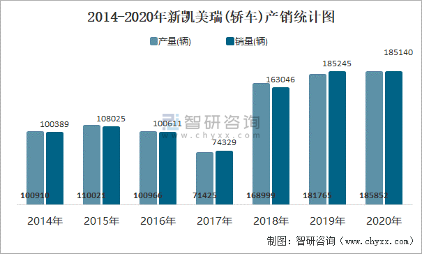 2014-2020年新凱美瑞(轎車)產銷統計圖