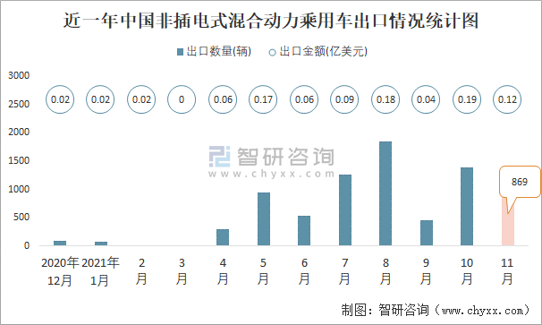 近一年中國非插電式混合動力乘用車出口情況統計圖