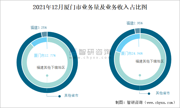 2021年12月廈門市業務量及業務收入占比圖