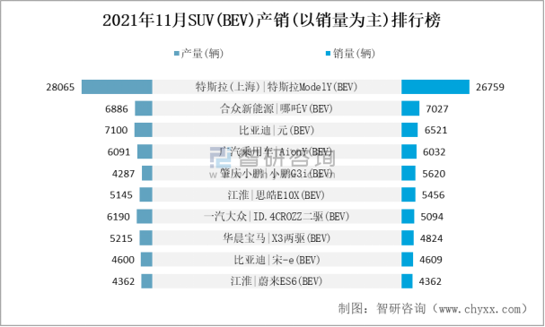 2021年11月SUV(BEV)產銷(以銷量為主)排行榜