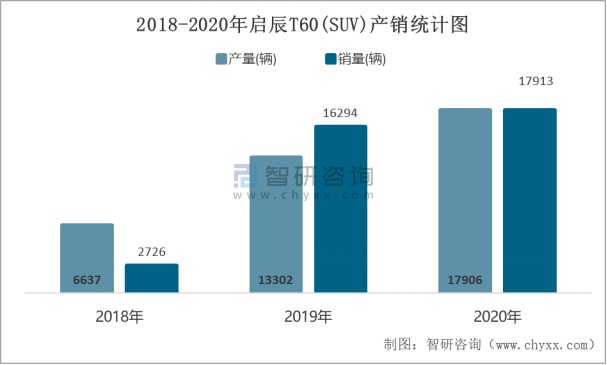 2018-2020年啟辰T60(SUV)產(chǎn)銷統(tǒng)計圖