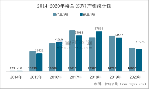 2014-2020年樓蘭(SUV)產銷統計圖