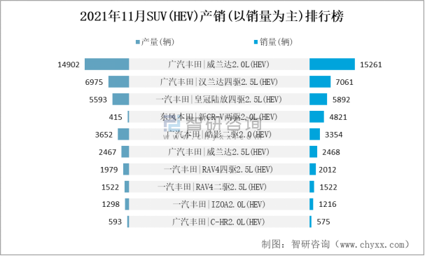 2021年11月SUV(HEV)產銷(以銷量為主)排行榜