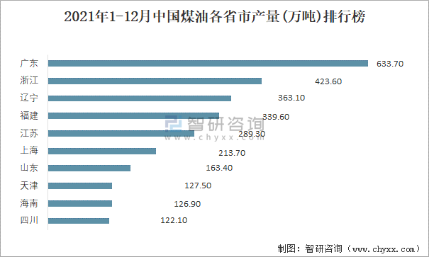 2021年1-12月中國煤油各省市產(chǎn)量排行榜