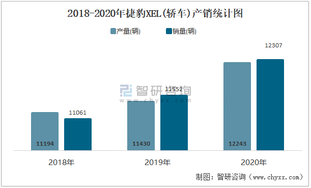 2018-2020年捷豹XEL(轎車)產銷統計圖