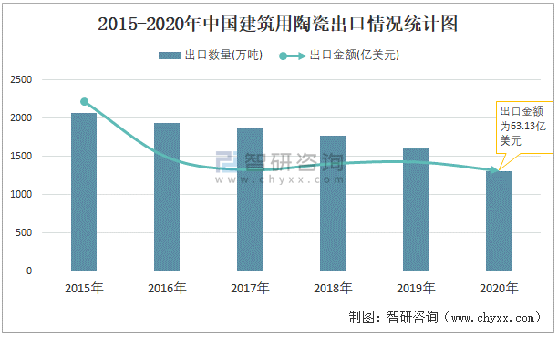 2015-2020年中國建筑用陶瓷出口情況統計圖