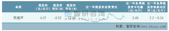 根據(jù)農(nóng)村農(nóng)業(yè)部數(shù)據(jù)統(tǒng)計(jì)可知:2022年第6周全國西葫蘆平均批發(fā)價為4.37元/公斤,同比下跌9.52%,環(huán)比下跌13.98%,近一年全國西葫蘆平均批發(fā)價最高達(dá)到6.24元/公斤,批發(fā)價最低也要2.2元/公斤。