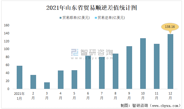 2021年山東省貿易順逆差值統計圖