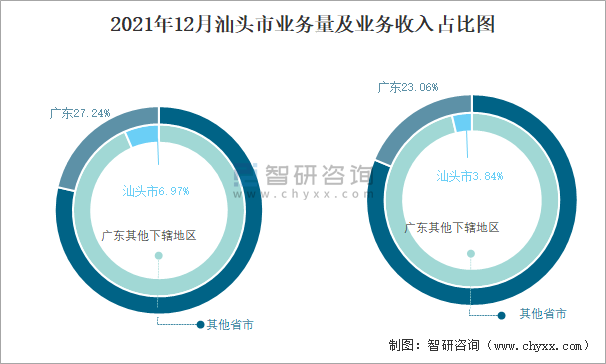2021年12月汕頭市業(yè)務量及業(yè)務收入占比圖